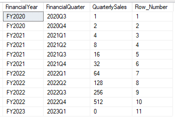 ORDER BY FinancialQuarter) AS [Row_Number],
