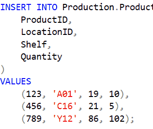 Here’s an example showing cut/paste in action where the INSERT statement has been written with two of the values in the wrong order. Let’s fix that: