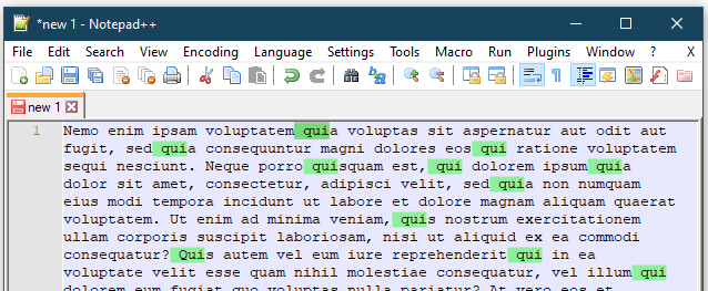 What’s more, with this setting it isn’t only parts of words which can be selected, you can also use spaces, tabs, or pretty much any character to highlight. This means that if you wanted to find words which start with a particular sequence you can precede with a space such as: