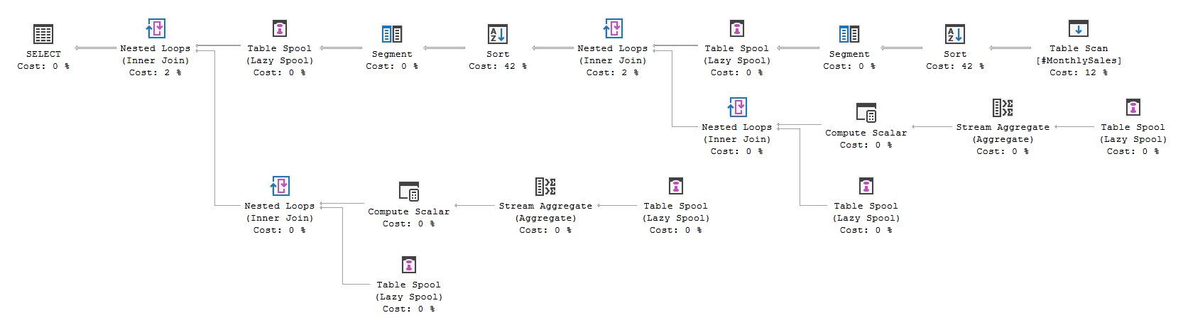 We’ve managed to reduce the plan to only require two sorts. Our partition based on Quarter is being processed second so the records are already in the right order to return the data. We’ve optimised out the final Sort operator.