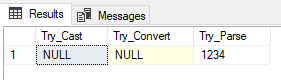 TRY_PARSE('1,234' AS INT) AS [Try_Parse];