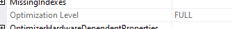 To see the optimisation level for a query we can look at the properties for the execution plan – either estimated or actual: