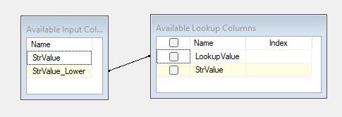 By referencing the view in the lookup we can join between our Character Map-ped lower case value, and the lower case LookupValue from our view: