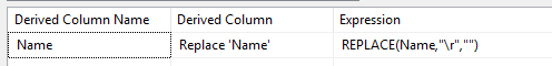 Inside the flow we’ll add a Derived Column transformation to replace the carriage returns present in the text: