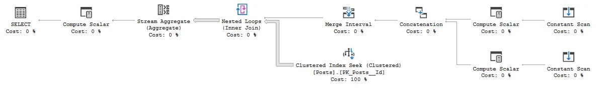 There are additional boundary checks at the beginning, and checks for identity gaps within the loop, but otherwise it’s as described above. The meat is within the WHILE loop where the probe is defined and start / end pointers updated accordingly. Once they’re exhausted or reduced within the target @MaxScanRange range, the small scan can be made to pick out the target record.
